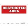 CONDOR 486W17 Restricted Area Sign, 14" W, 10" H, English, Aluminum, White