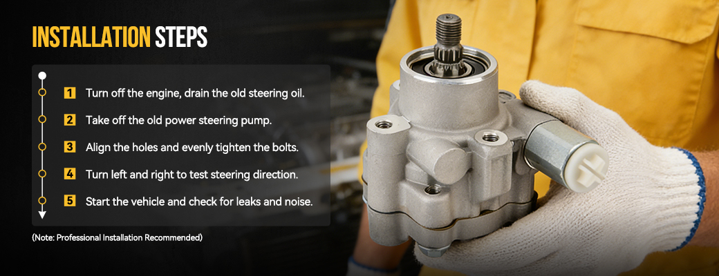 - Attach the new power steering pump, ensuring that the pulley is properly aligned.