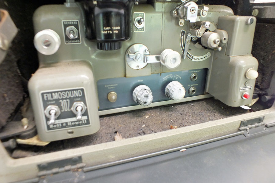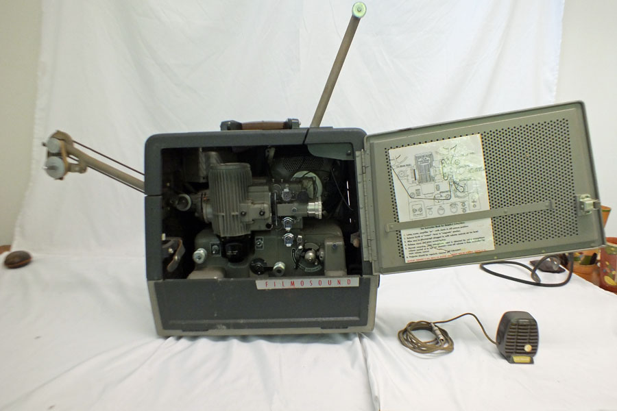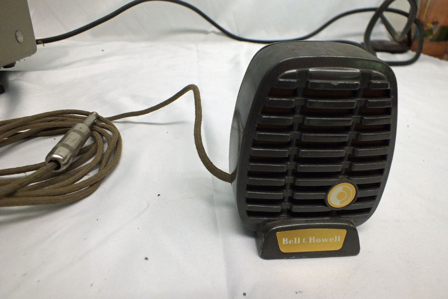 Vintage Bell & Howell Filmsound 16mm ProjectorFresh from a Dallas Estate comes this 16mm film projector by Bell & Howell. This is a pretty deluxe projector with sound and recording functions. It turns on, runs and seems to function as intended but there is no sound. It is a little dirty and has not been serviced. There's some oxidation on the knobs but the original cord is supple. There's a Bell & Howell microphone included. All knobs and doors seem to function as intended. Nothing has been cleaned, altered, or repaired.