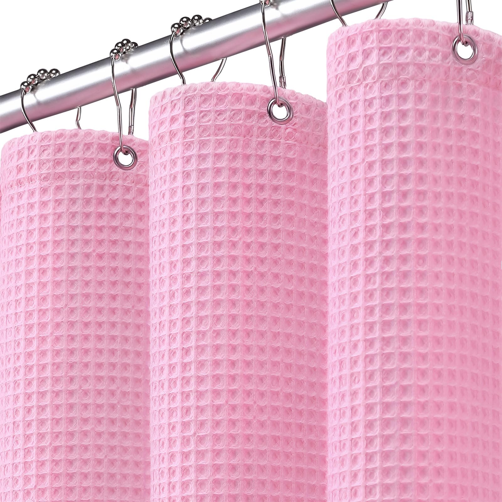 - Waffle Weave Shower Curtain - Pink Cotton Fabric Texture Heavyweight Shower Curtain for Bathroom,Washable,72Wx72L
