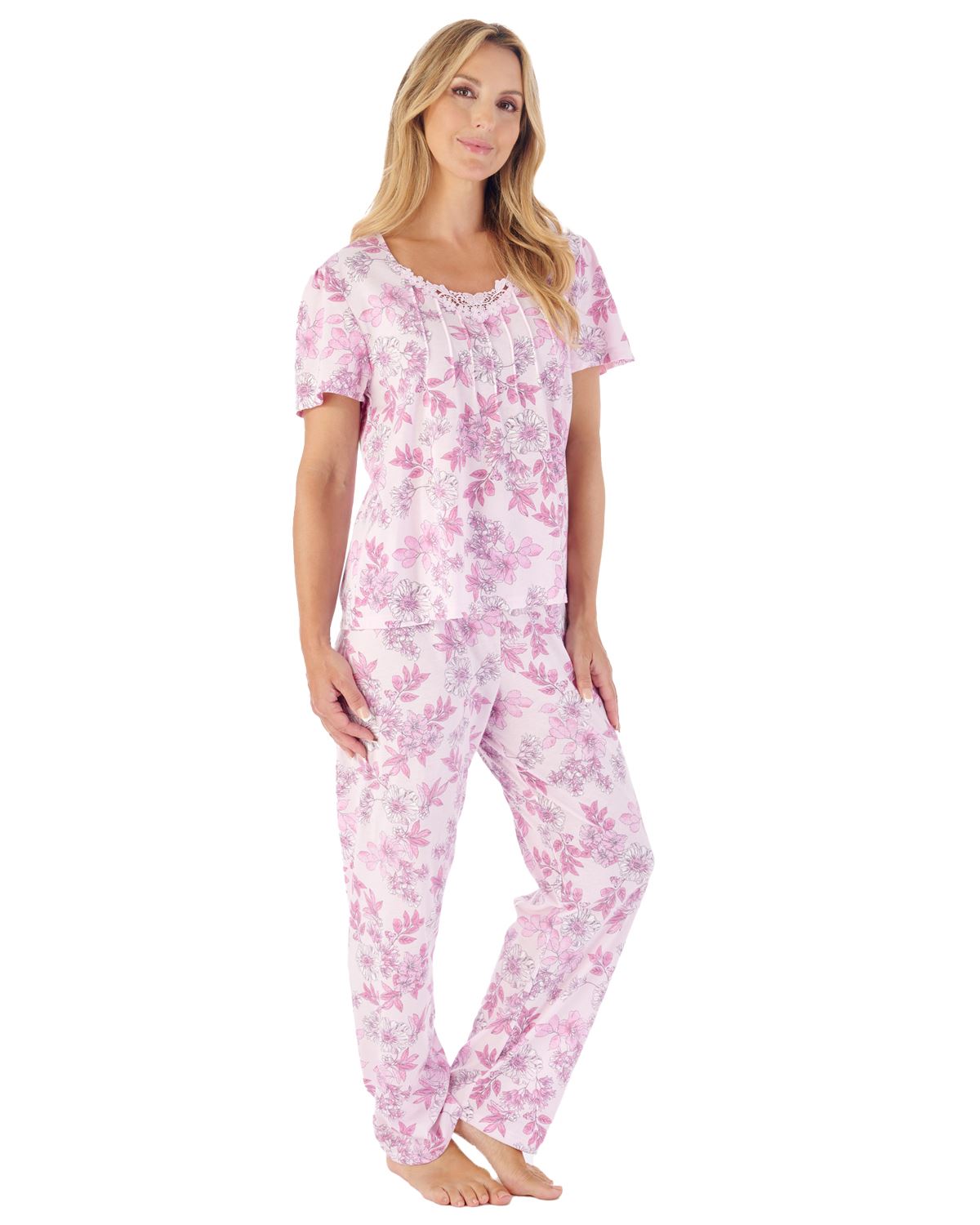 Pyjama à manches courtes en jersey à imprimé floral Slenderella