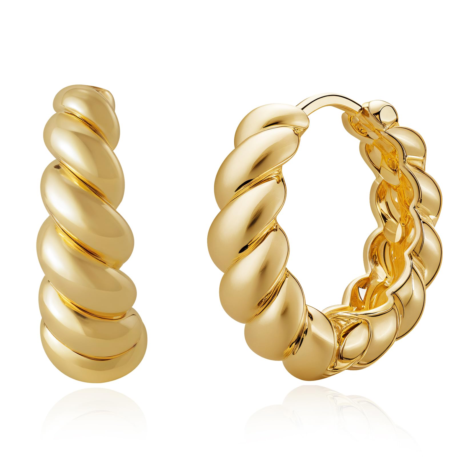 MEVECCO Gold Huggie Hoop Earring for Women 18K Gold Plated Dainty Cute Twist