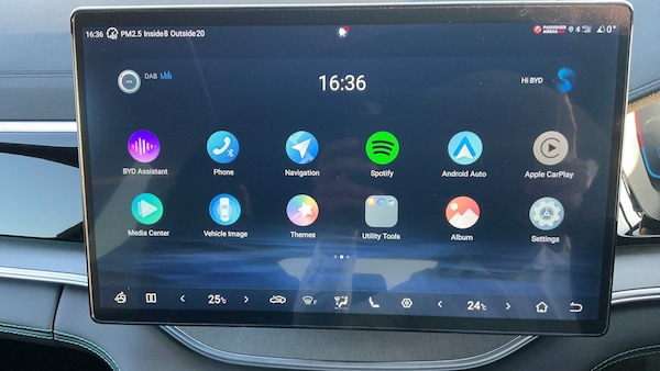 11kW On-board Charger - OBC, 12.3in TFT Full LCD Instrument Panel, 12V Power Output, 15.6in Electric Rotary Touchscreen, 2x Front USB Port - 1x 18W Type C and 1x 60W Type C, 2x Rear USB Port - 2x 18W Type C, 360 degree Camera, Adaptive Cruise Control - ACC and Intelligent Cruise Control - ICC, Apple Carplay - Android Auto, Blind Spot Detection - BSD, Cloud Service - BYD App, DAB Radio and FM Radio, Door Opening Warning - DOW, Driving Modes - Eco - Normal - Sport - Snow, Emergency Call, Exterior Mirror Footlight, Follow Me Home Headlights, Forward Collision Warning - FCW, Front Cross Traffic Alert - FCTA and Front Cross Traffic Brake - FCTB, Front and Rear - Parking Radars, Heads-Up Display - HUD, Heat Pump, High Beam Assist - HMA, Home Charging Cable - 3-Pin, Infinity Sound System - 10 Speakers, Intelligent Speed Limit Control - ISLC, Intelligent Voice Control - HI-BYD, LED Daytime Running Lights, LED Headlights - Automatic On - Off, LED Taillights, Lane Change Assist - LCA, Lane Departure Prevention - LDP, Lane Departure Warning - LDW, Mode 3 Type 2 Charging Cable - 3-phase, Onboard 4G Connectivity, Power Steering System, Predictive Collision Warning - PCW, Rear Collision Warning - RCW, Smartphone Wireless Charging - 2x 15W, Traffic Sign Recognition - TSR, Tyre Pressure Monitoring System - TPMS, Vehicle To Load Function - V2L, 19in Alloy Wheels - Bi-colour, 4x One-click Lift Window with Anti-pinch Function, Aluminium Roof Rail, Dynamic Welcome Lights, Electrically Folding-Heated and Adjustable Exterior Mirrors, Emergency Tow Hook, Front Windscreen - UV Protection - Thermal Insulation - Soundproofing, Panoramic Sunroof - Anti Pinch - Electrically Adjustable Sunshade, Rear Fog Lights, Rear Windows and Rear Windscreen - Privacy Glass, Tyre Repair Kit, 2x Smart Key, Anti-lock Brake System - ABS, Anti-Theft System, Auto-lock Sytem, Automatic Emergency Braking - AEB, Automatic Vehicle Hold - AVH, Brake Override System - BOS, Child Presence Detection - CPD, Comfort Stop - CST, Controller Deceleration Parking - CDP, Drivers Airbag, Electric Parking Brake System - EPB, Electronic Brake Distribution - EBD, Emergency Lane Keep Assist - ELKA, Front Centre Airbag, Front Passengers Airbag with Deactivation Switch, Front Seat Belts - Pre-Tensioned and Force Limiter, Front Side Airbags, Hill Decent Control - HDC, Hill Hold Control - HHC, Hydraulic Boost Brake - HBB, Hydraulic Brake Assistant - HBA, ISOFIX and i-Size - Front Passenger and Outer Rear Seats, Indirect
