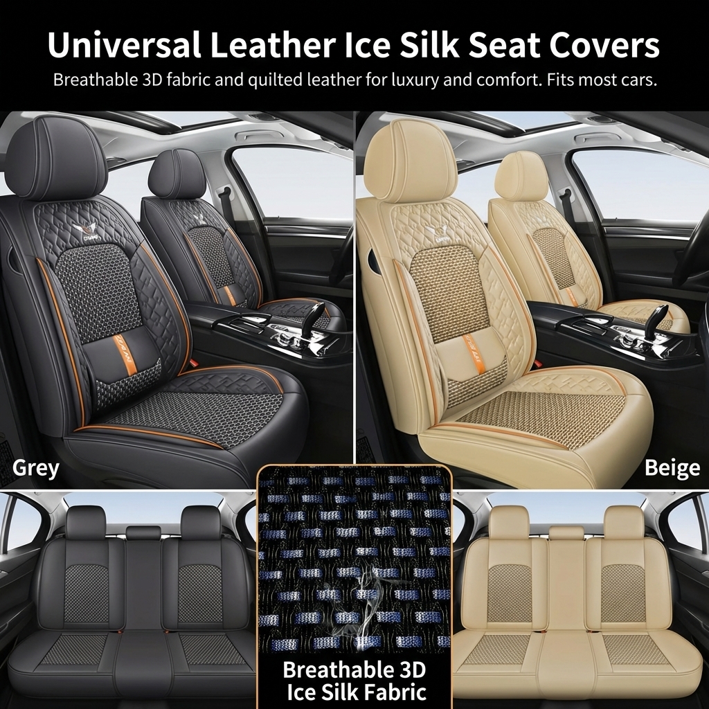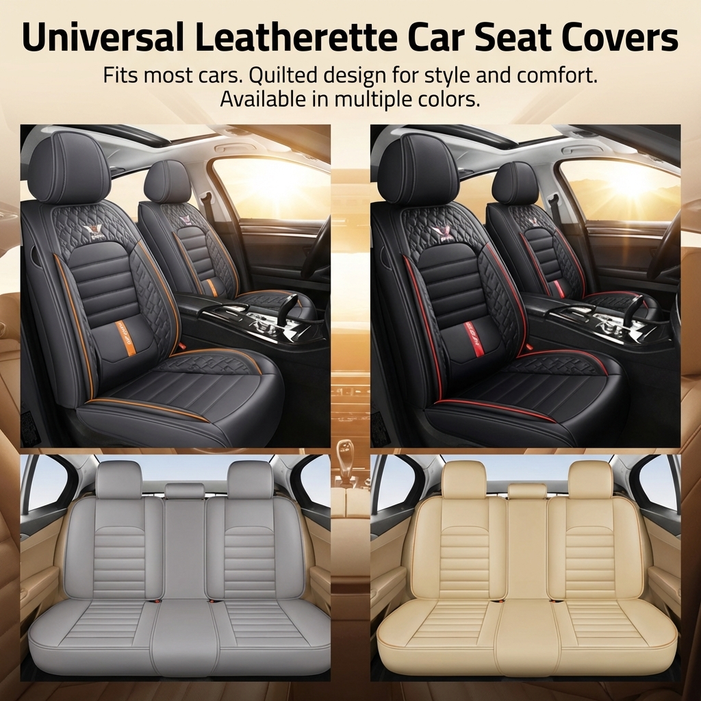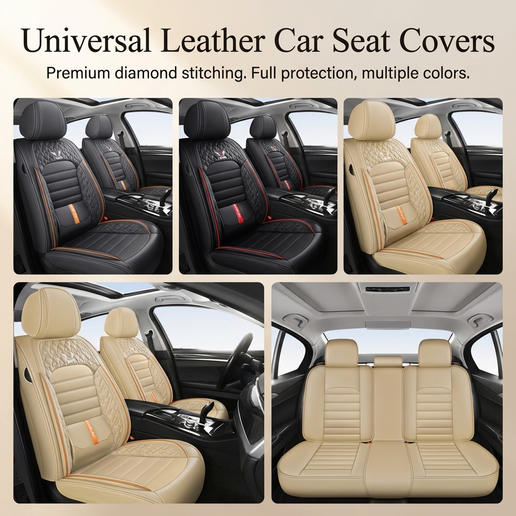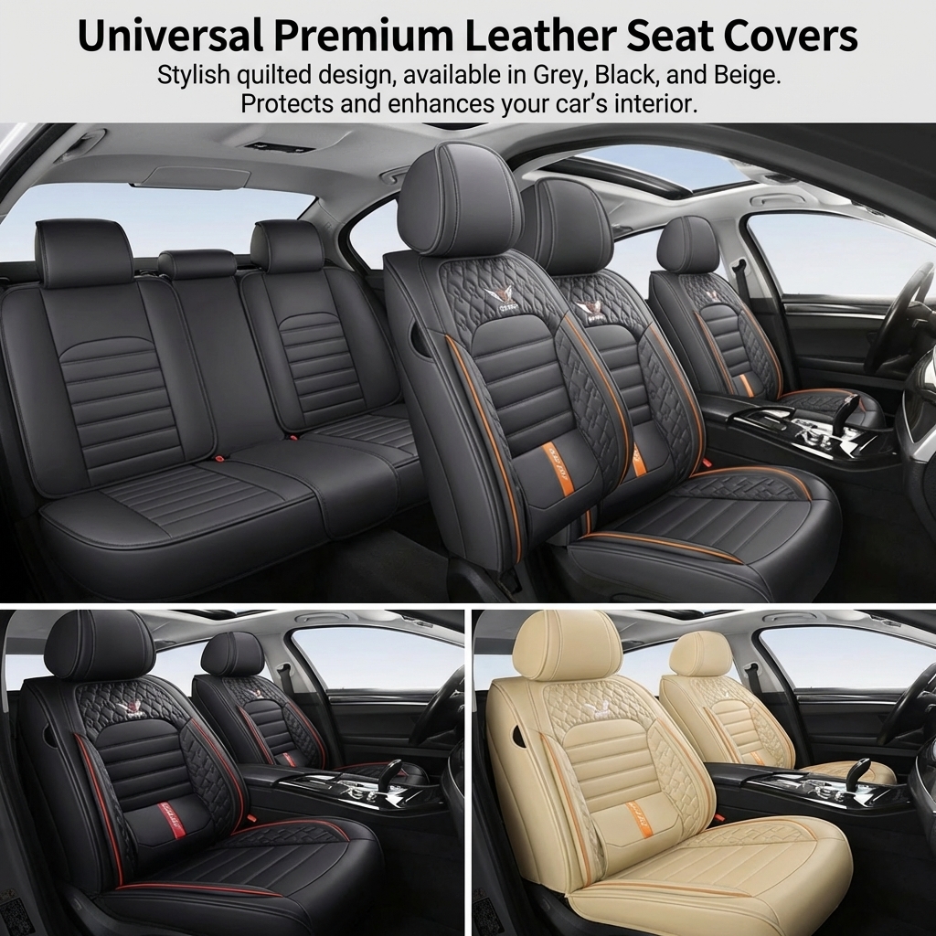 Premium Nappa Leather Car Seat Cover Front Rear 5 Seats Front Rear Universal Set