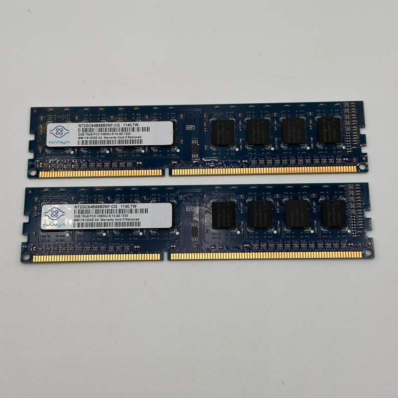 Boost your computer's performance with these Nanya 2GB 1Rx8 PC3-10600U RAM sticks. This listing includes two 2GB RAM sticks, perfect for enhancing your system's speed and multitasking capabilities. Ideal for users looking to upgrade or replace their existing memory, these RAM sticks come in a sleek blue color and are in Uséd - B condition.