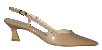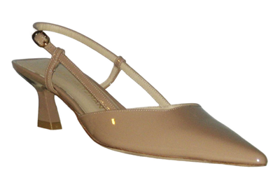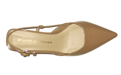 VINNIE 50 KITTEN HEEL PATENT LEATHER SLINGBACK PUMPS SIZE 7.5 FAWN MSRP $525