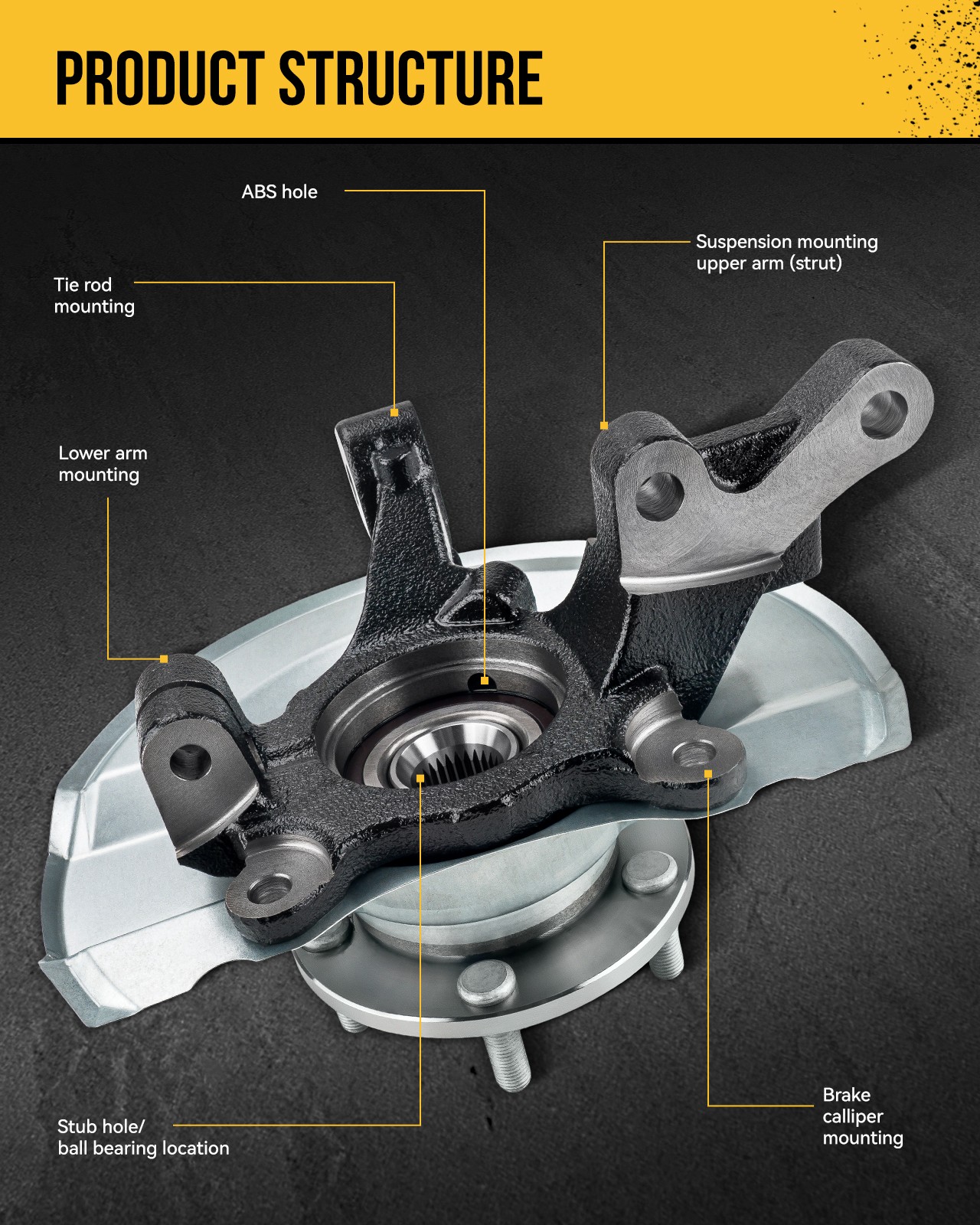 - Remove the old assembly and install the new steering knuckle wheel hub bearing, ensuring proper alignment.