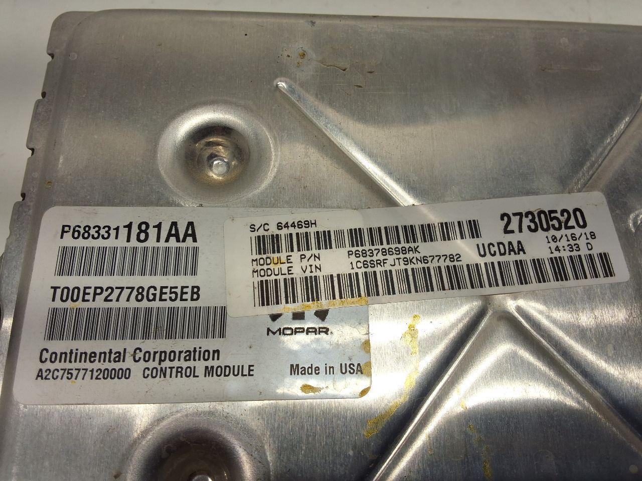 DODGE 1500 PICKUP 19 new style (6 lug wheel), (Electronic Control Module), 5.7L, 12 volt system (non-eTorque)