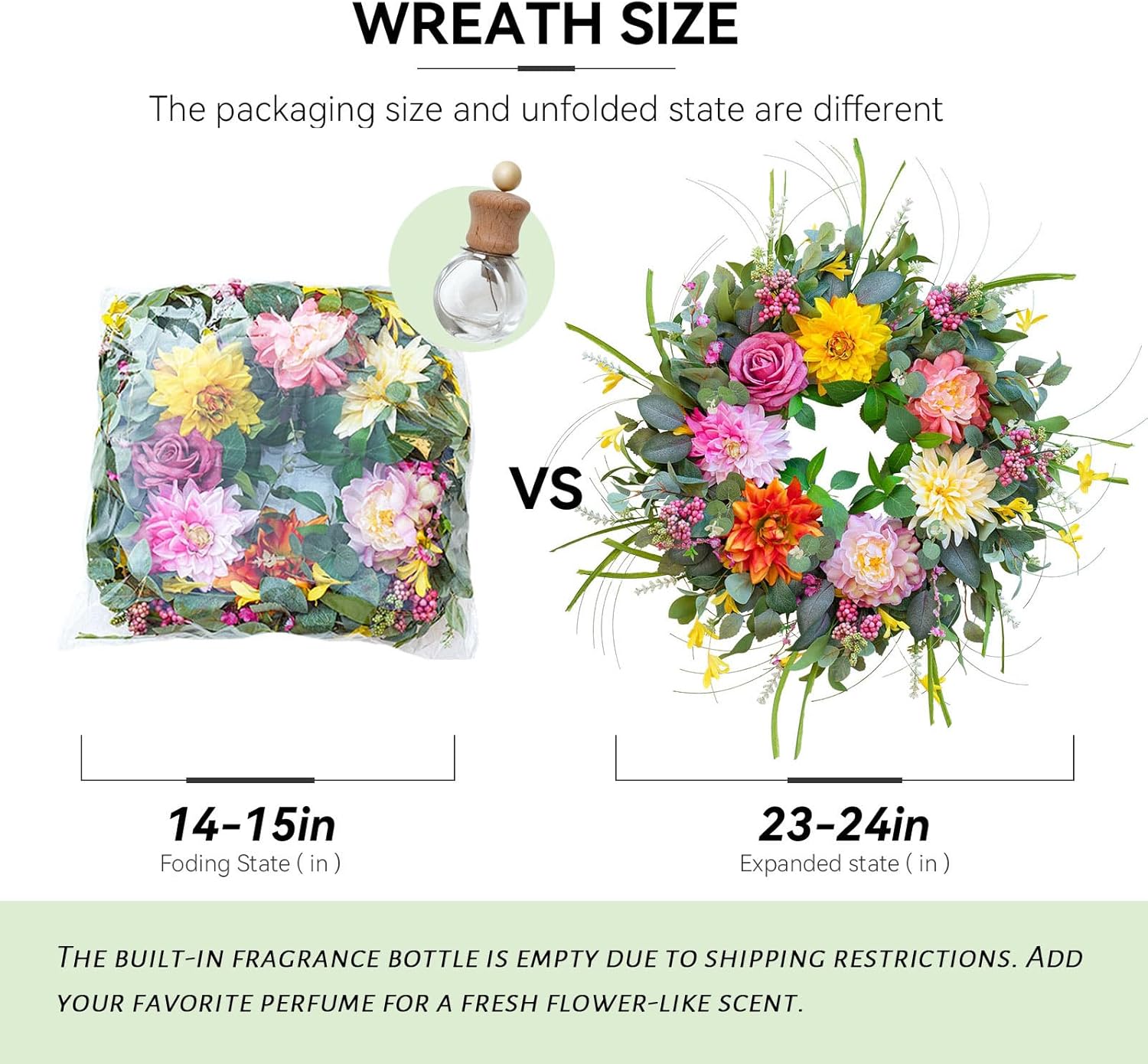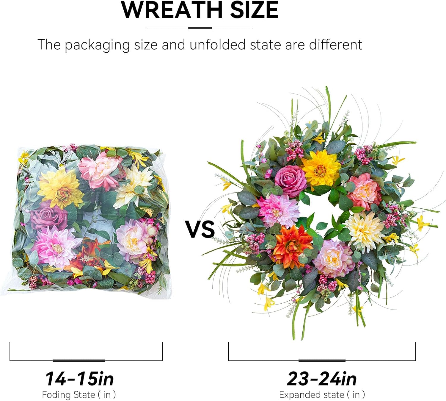 Ready to UseBring a breath of fresh spring air to your home in just 2-3 minutes! Simply fluff the wreath,and it will return to its vibrant,full-bodied glory. Paed in a premium stora box for easy transport and safekeeping,it also makes a thoughtful for any ocn..