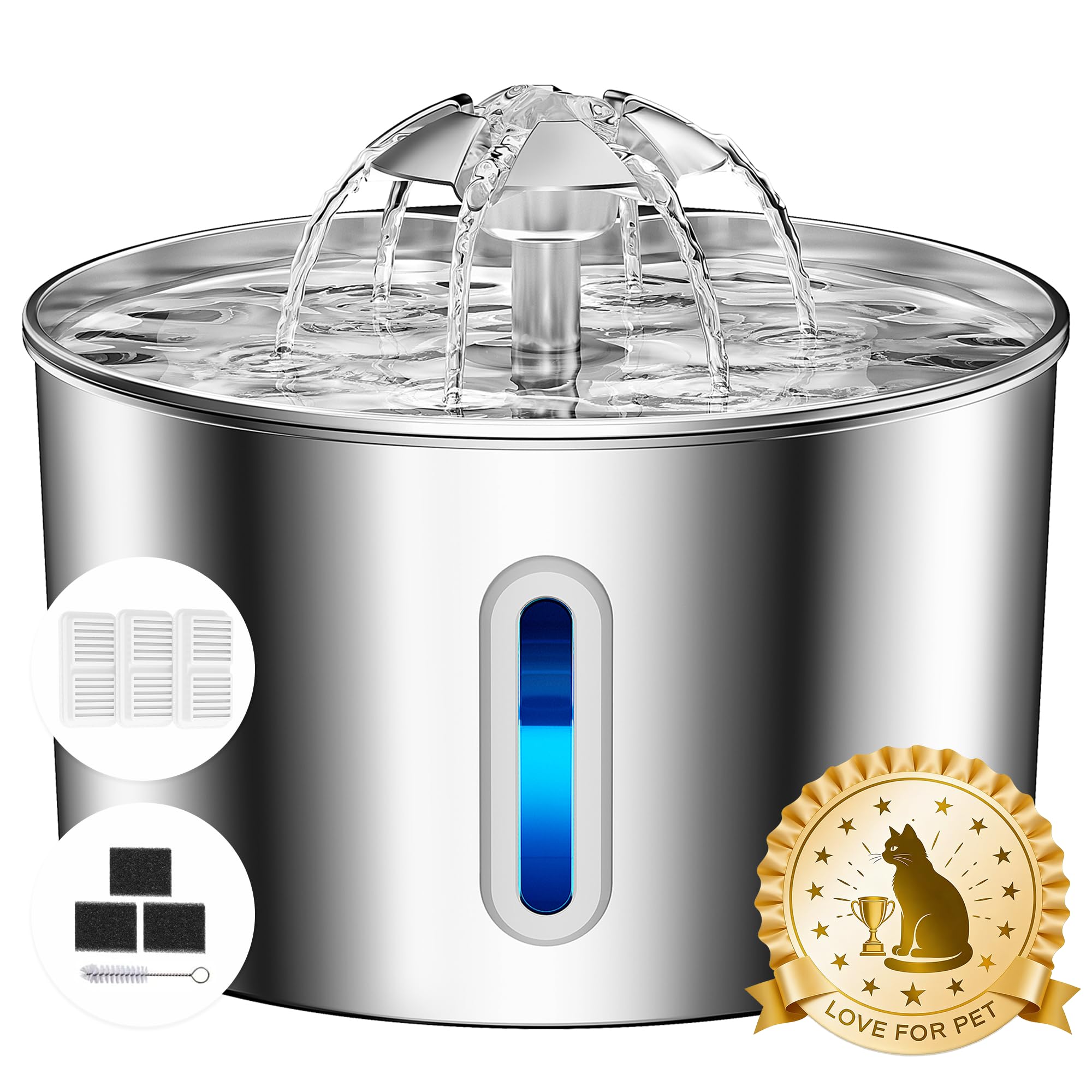 Cat Water Fountain Stainless Steel - 74oz/2.2L Corded Pet Water Dispenser Automatic Silent Cats Dispenser for Drinking Inside Indoor This stainless steel cat water fountain is perfect for cat cats and dog dogs, designed for small owners. A unique black themed gift for women men mom dad girls people, ideal for lovers and every pet lover. Great presents for xmas.