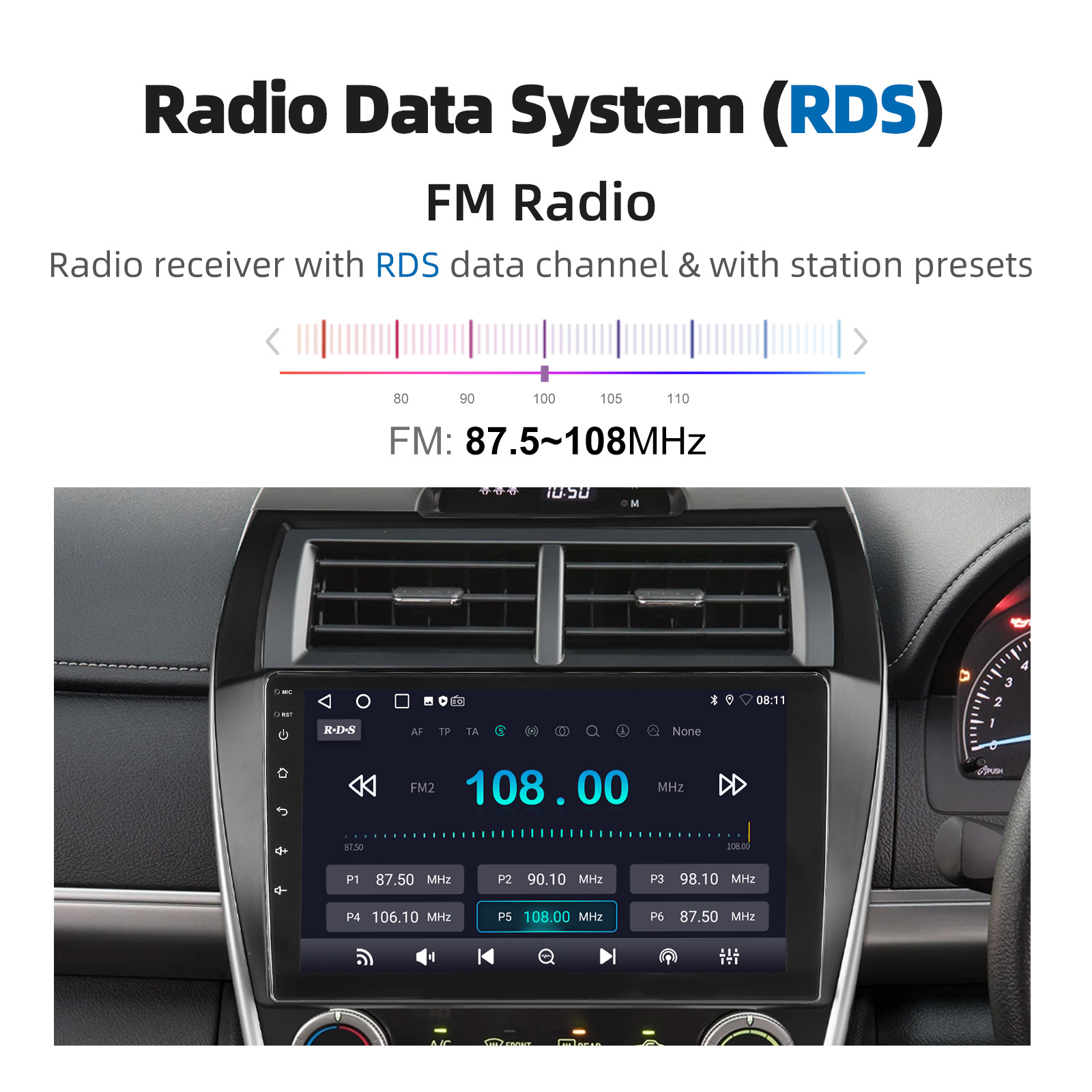 Radio Data System (RDS): RT, AF, TA provides all the FM channel information you need.