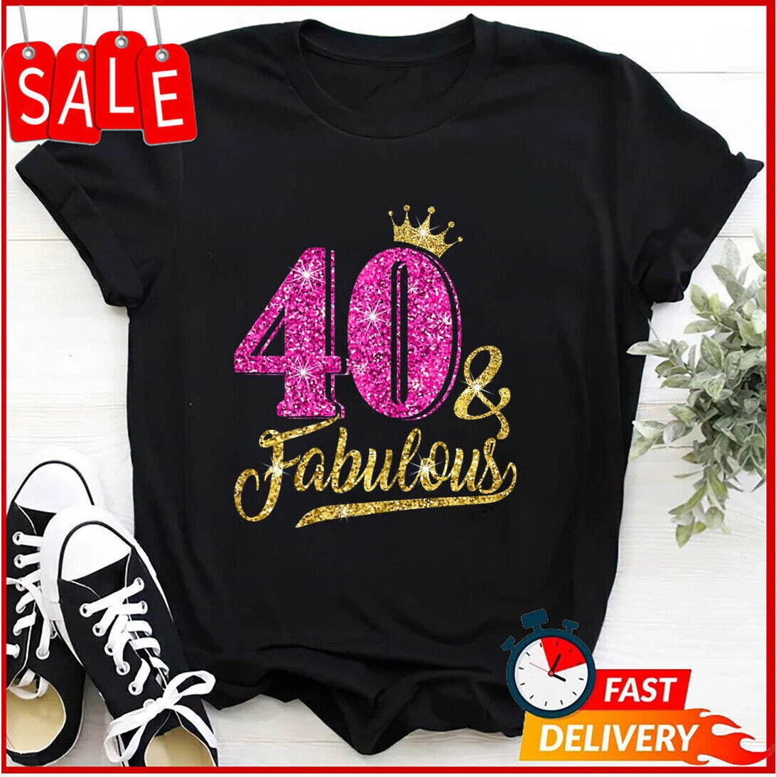 40 Years Old Gift 40 & Fabulous 40th Birthday T-Shirt Women Birthday Gift