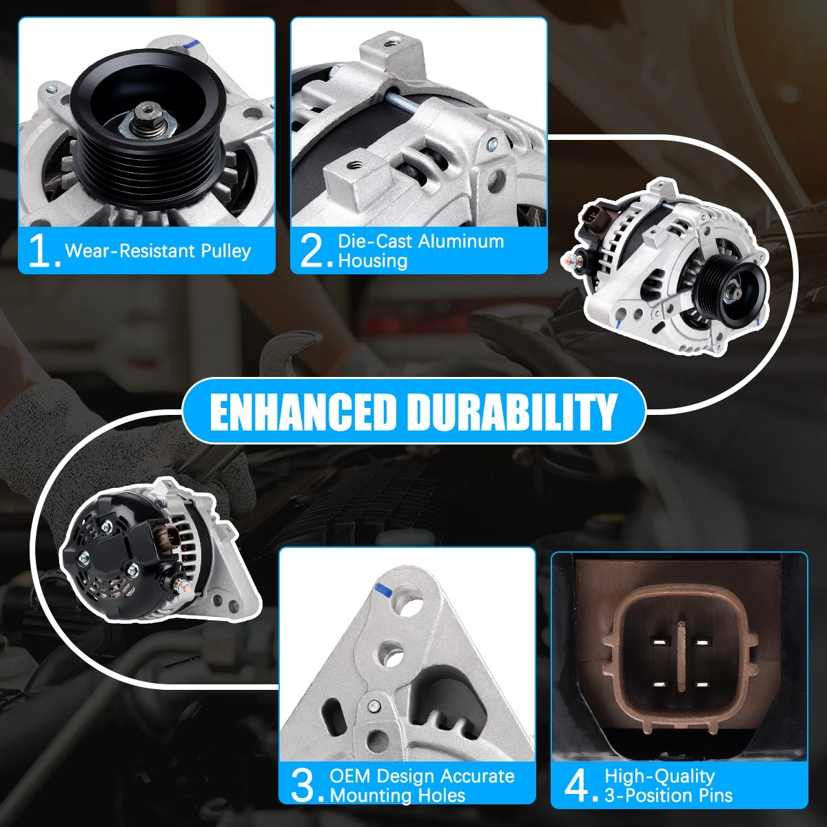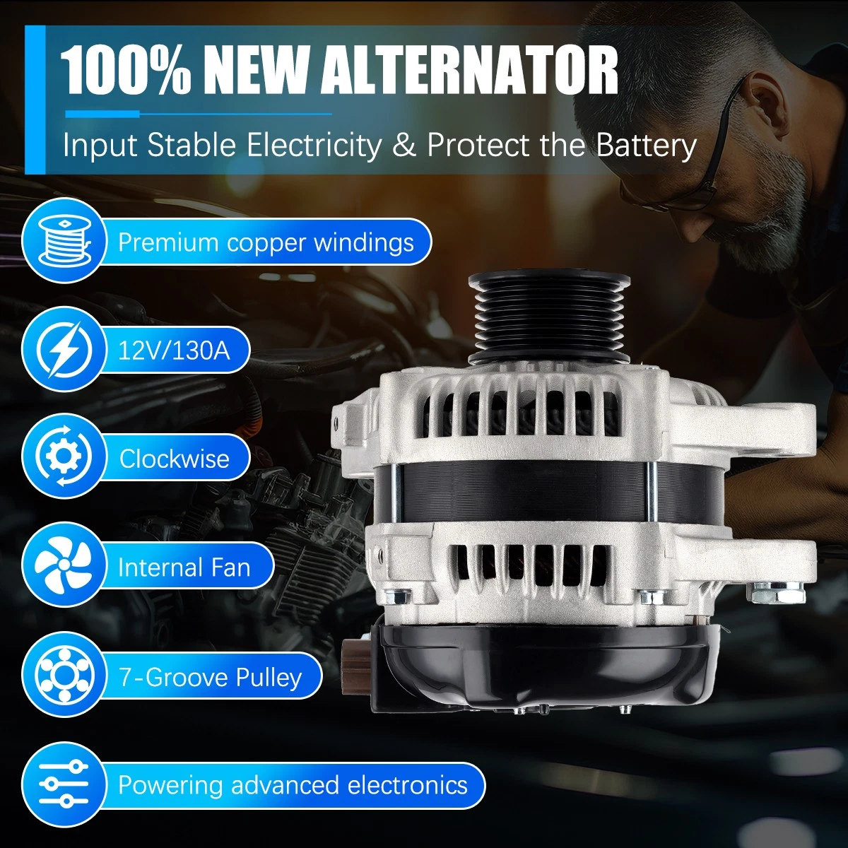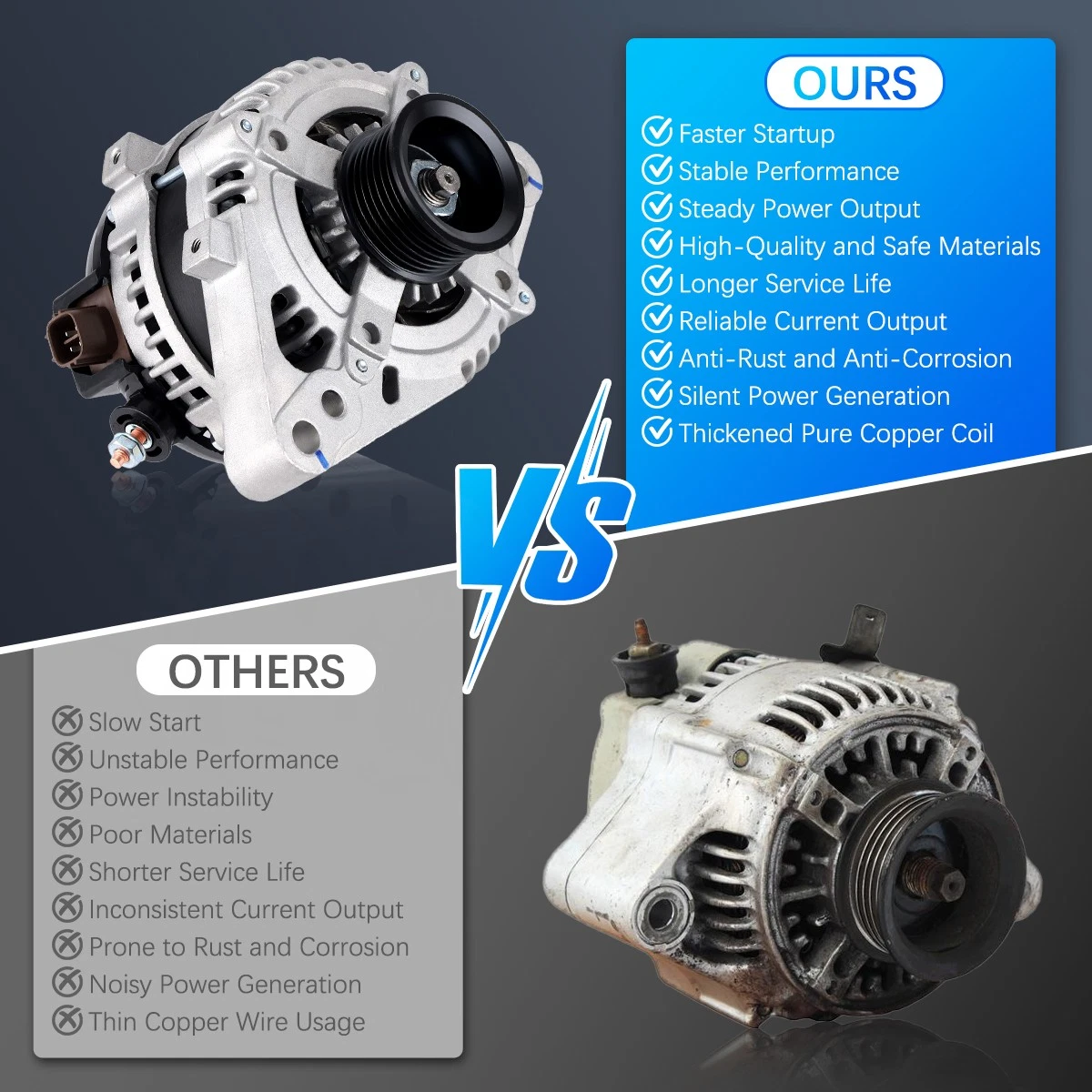 Rugged and stable car alternator, matched against OE originals for performance.