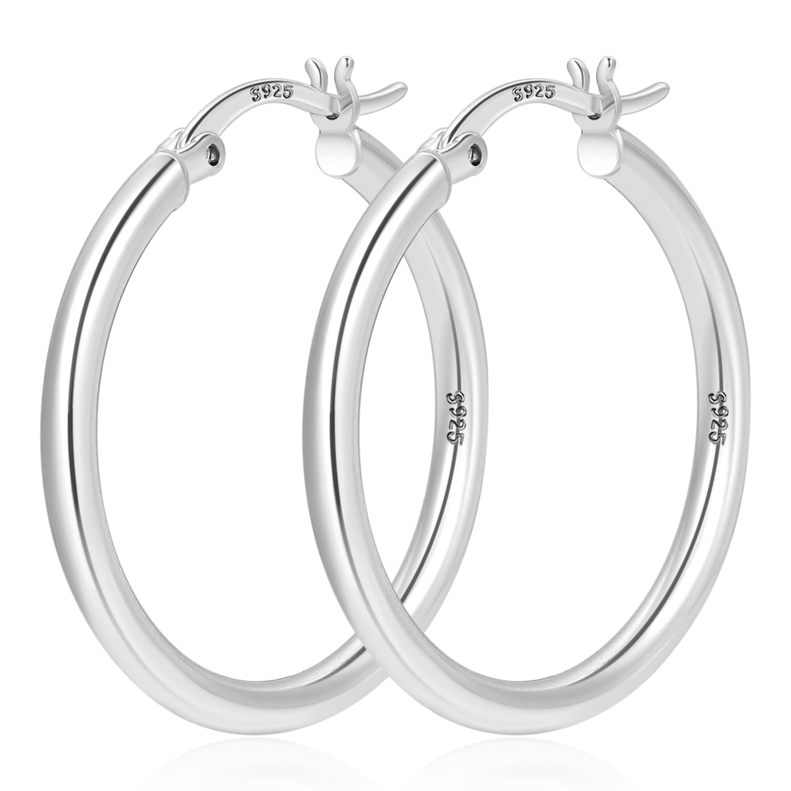 2mm Sterling Silver Hoop Earrings for Women Hypoallergenic 925 Sterling Silver Hoop Earrings Lightweight Large Silver Hoop Earrings 20/30/40/50/60/70mm