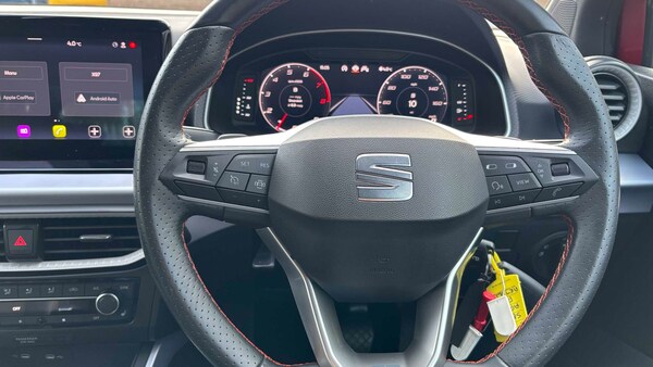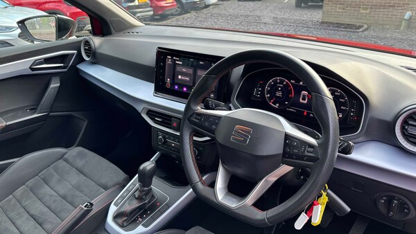 18in Alloy Wheels - Performance - Cosmo Grey Matt, Chrome Roof Rails and Window Surround, Contrast Roof, Dark Tinted Rear Windows, Electrically Adjustable Folding and Heated Door Mirrors, Emergency Tyre Repair Kit, Front and Rear Electric Windows, Locking Wheel Bolts, Protective Side Moulding, Rear Spoiler, Roof Coloured Door Mirrors, Twin Exhaust Pipes, 9.2in Touchscreen Display, Bluetooth Audio Streaming with Handsfree System, Cruise control with speed limiter, Front and Rear Fog Lights with Cornering Function at Front, Full LED Automatic Headlight, Full Link Smartphone Integration, LED Rear Taillights, Power Assisted Steering, Rear Parking Sensors, SEAT Connect - Safety - Service - Remote - Online, SEAT Drive Profile, Six Speakers, Tiredness Recognition System, Tyre Pressure Monitoring System, Wireless Phone Charger, Aircare Filter, Auto Dimming Rear View Mirror, Black Interior Roof, Coloured Air Vent - Daring Red, Digital Cockpit - 10in, Double Boot Floor, Dual Zone Climate Control, Front Comfort Seats, Front Courtesy Light with Front Reading Lights, Front Seats with Back Storage Pockets, Heated Front Seats, Height Adjustable Front Seats, Illuminated Air Vent Surrounds, Interior Ambient Light, Interior Chrome Pack, Interior Light in Footwell - Centre Console and Door Panel, Perforated Leather Flat-Bottomed Steering Wheel with Red Stitching and FR Logo with Leather Gear Knob and Handbrake, Rain Sensing Wipers, Rear Fog Light, Split Folding Rear Seats - 60-40, Sunvisors with Mirror and Cardholder - Driver Side, Titan Black Dashboard, Two Front and Three Rear Height-Adjustable Headrests, Alarm with Back-Up Horn, Anti-Lock Braking System - ABS, Driver and Front Passenger Airbags, EBA - Emergency Brake Assist and Front Assist, Electronic Engine Immobiliser, Electronic Stability Control - ESC, Front and Rear Seatbelt Reminder, Hill Hold Control, ISOFIX Points in Outer Rear Seats with Top Tether Anchorage Points, Lane Keeping System, Licence Plate Lights, Side Airbag in Front with Curtain Airbag, Three-Point Seatbelts on All Rear Seats