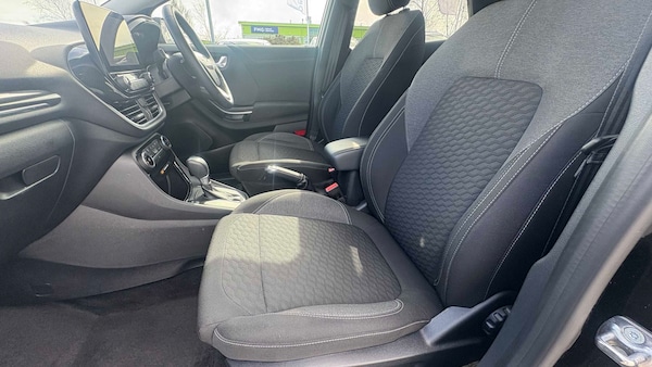 17in Alloy Wheels - 10-Spoke - Absolute Black Machined Finished, Quickclear Heated Windscreen, Ford SYNC 3 Navigation, Agate Black, Acoustic Laminated Windscreen, Active Grille Shutter, Ecoboost Hybrid Tailgate Badge, Electric Windows - Front and Rear, Front Bumper - Base Facia Body Colour with Lower Part Black, Locking Wheel Nuts, Lower Bodyside Moulding with Chrome Insert, Power-Foldable Heated Door Mirrors with Puddle Lamps, Puma Badge, Rear Bumper - Plastic Dual Colour, Privacy Glass, Rear Spoiler - Body Colour with Centre High Mounted Stop Light, Cloth - Black, Tailgate - Manual, Tyre Inflation Kit, 4.2in Colour TFT Analogue Instrument Cluster, Automatic Headlights with Rain-Sensing Wipers and Auto High Beam, Cruise Control with Intelligent Speed Assist, Front Fog Lights, Intelligent Speed Assistance, LED rear lights, Power Steering, Pre-Collision Assist with Autonomous Emergency Braking and Pedestrian-Cyclist Detection, Projector Headlamps with LED Daytime Running Lights, Rear Parking Sensors, Selectable Driving Modes - Normal - Eco - Sport - Slippery and Trail, Speed Limiter, Standard Suspension, Trip-Fuel Computer, Tyre Pressure Monitoring System - TPMS, ABS - Anti-lock Braking System, ESC - Electronic Stability Control and Hill Start Assist, Emergency Brake Warning - Automatic Hazard Warning Lights, First Aid Kit Strap, Lane Keeping Aid with Lane Departure Warning, Post Collision Braking, Remote Central-Double Locking, Thatcham Alarm, Traction Control and Emergency Braking Assistance, Automatic Dimming Rear View Mirror, Centre Console - Premium with Openable Stowage Area with USB Connectivity - 2 Cupholders and 12v Power Point, Courtesy Lights - Ambient LED Courtesy Lighting - Single Colour, Drivers Manual 4-Way Seat Adjustment with Manual Lumbar Adjust, Electronic Air Temperature Control - EATC, Ford MegaBox Extended Bootspace, Ford Power Starter Button, Front Floor Mats, Front Seats - Sports Style, Handbrake - Black Sensico Trimmed with Stitching, Headliner - Deluxe, Instrument Panel - High Level, Passengers Seat - 2-Way, Rear Seats - 2-Way Head Restraint Up-Down, Rear Seats - Second Row 60-40 Folding Seats, Restrain Device Pack, Sensico Steering Wheel - Handbrake and Gear Knob, Soft-feel Gearshift Boot with Metal Grey Stitching