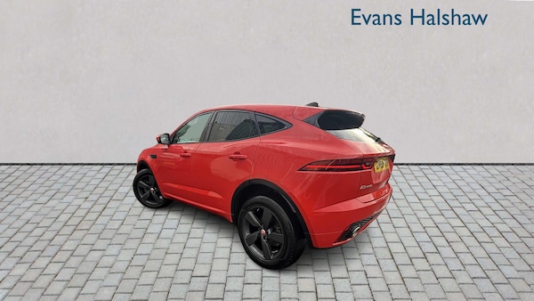 10-Way Heated Electric Front Seats, 2-Zone Climate Control, 3-Flash Lane Change Indicators, 60-40 Split Fold Rear Seat, Auto-Dimming Interior Rear View Mirror, Black Gearshift Paddles, Bright Metal Pedals, Carpet Mats, Centre Console with Armrest, Diesel Misfuelling Protection Device, Ebony Morzine Headlining, Interactive Driver Display, Interior Lighting, Loadspace Cover, Loadspace Elasticated Side-Strap, Loadspace Lighting, Loadspace Storage Net, Luggage Tie Downs in Loadspace, Metal Treadplates with Chequered Flag Branding, Overhead Lighting Console, Passive Front Head Restraints, Power Tailgate-Boot Lid, Push Button Start, R-Dynamic Branded Leather Steering Wheel, Rain sensing windscreen wipers, Rear Air Vents, Rear Bench Seat - 3 Seats, Rear Centre Headrest, Smart settings, Sunvisors with Illuminated Vanity Mirrors, Twin Front Cupholders, x4 Hooks in Loadspace, 10in Touch Pro, AM-FM Radio, Android Auto, Apple CarPlay, Approach Illumination, Automatic Headlights, Bluetooth Connectivity, Connect Pro Pack, Cruise control with speed limiter, DAB Radio, Driver Condition Monitor, Dynamic Volume Control, ECO Driving Style Assistant, EPAS - Electric Power Assisted Steering, Efficient Driveline, Front Fog Lights, Front and Rear Parking Aid, JaguarDrive Control, LED Headlights with Signature Daytime Running Lights, Low Friction Launch, Navigation Pro System, Outside Temperature Gauge, Passive Suspension, Power Sockets, Pro Services and Wi-Fi Hotspot, Rear View Camera, Remote, Smartphone Pack, Sound System - 125W, Speed Proportional Steering, Start Up Sequence with Movement - Dials and Lighting, Torque Vectoring by Braking - TVBB, Traffic Sign Recognition with Adaptive Speed Limiter, Trip Computer, Tyre Pressure Monitoring System, Voice Control, 19in Alloy Wheels - 5 Spoke Satin Dark Grey Finish - Style 5049, Auto-Dimming - Power Fold - Heated Door Mirrors with Approach Lights, Black Exterior Pack, Body Coloured Roof, Body-Coloured Door Claddings, Chequered Flag Badge, D150 AWD Badge, E-PACE Badge, Electric Windows - Front and Rear with One-Touch Open-Close and Anti-Trap, Fixed Panoramic Roof, Heated Front Windscreen, Heated Rear Window, Heated Washer Jets, Jaguar Script and Leaper, Locking Wheel Nuts, R-Dynamic Body-Coloured Bumpers, Rear Fog Lights, Summer Tyres, Tailgate Spoiler, Twin Tailpipes with Finishers, Tyre Repair System, ABS - Anti-locking Braking System, ASPC - All Surface Progress Control, Airbags - Front Side, Airbags - Full Length Side Window