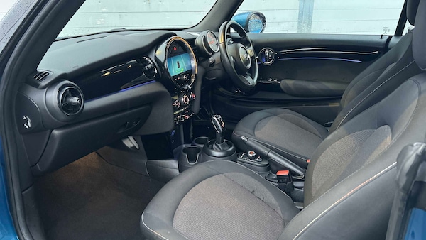 12 Volt Socket in Front Centre Console, 8.8in Touch Screen with LED Ring, Apple CarPlay, Automatic Headlight Activation Switch, Bluetooth for Compatible Mobile Phone with Audio Streaming, Cruise Control with Brake Function, DAB Tuner and FM Tuner, Electro-Mechanical Steering with Speed Dependant Steering Assistance, Electronic Gear Shifter, LED Headlights with Closed Ring as Daytime Driving Lights, MINI E-Call, MINI Teleservices, On-Board Computer, PDC - Park Distance Control - Rear, Performance Control, Rear LED Lights with Union Jack Design, Speakers - 4, TPWS - Tyre Pressure Warning System, 15in Alloy Wheels - Heli Spoke, Convertible Pack, Electric Windows - Front, Exhaust Tailpipe - Left with Chrome Finisher, Flexible Car Sharing Preparation, Fuel Filler Cap in Body Colour, Fully Electric Black Soft Top with Integrated Sun-Roof Functionality, Heated Rear Window, Heated Windscreen Washer Jets, Mirror Caps in Body Colour, Model Logo Cooper on Right of Tailgate, Radiator Grille - Chrome Border with Black High-Gloss Slats, Rear Fog Light, Side Scuttle Panels with Integrated Indicators, Sun-Heat Protection Glass, Tyre Repair Kit, White Indicators, 3 Point Seatbelts on all Seats, Active Roll-Over Protection, Airbags, Alarm System, Anti-Lock Braking System - ABS, Dynamic Brake Lights, Dynamic Stability Control - DSC, Electronic Vehicle Immobiliser, Front Passenger ISOFIX and Airbag De-Activation Switch, Rear Passenger ISOFIX, Single Tone Fanfare Horn, 4 Lashing Eyes in Luggage Compartment, Air Conditioning - Manual, Carbon Black Colour Line - Knee Roll and Door Armrests, Chrome Highlights, Cupholders, Door Sill Strips - Metal with MINI, Easy Load Function, Floor Mats - Velour, Folding Rear Seats - 50-50, Glove Compartment, Instrument Cluster, Interior Lighting, Interior Trim - Piano Black, Keyless Go, LED Reading Lights - Vanity Mirror Lights - Front Foot Well Lights - Spotlights on Front Seats, Leatherette Gearshift Lever and Handbrake Gaiters, Mechanical Seat Adjustment - Forward-Back and Backrest for Front Seats - Driver Seat Height Adjust, Multifunction Controls for Steering Wheel, Rain Sensor Window Wipers, Sport Leather Steering Wheel, Steering Column Height and Length Adjustment, Storage - Compartments in Doors, Sun Visor with Vanity Mirrors, Tool Kit, Firework Cloth - Carbon Black, Island Blue, Bonnet Stripes - Black