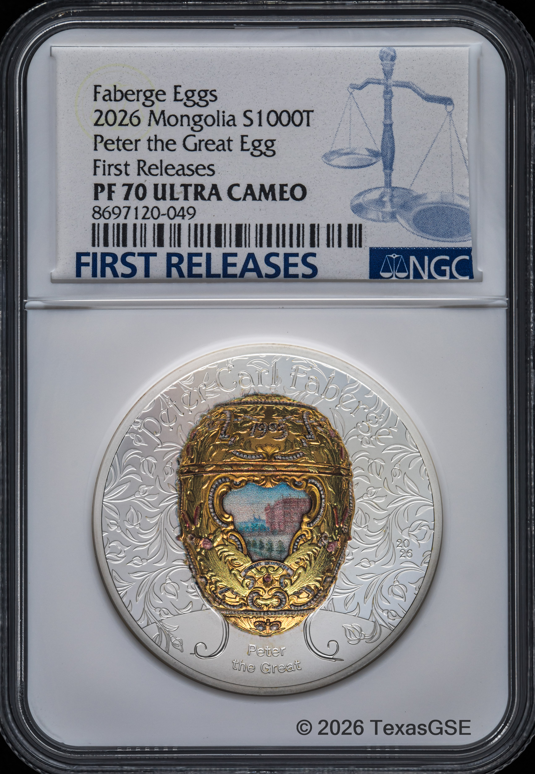 2026 Mongolia 2oz Silver Peter Carl Faberge Egg - Peter the Great NGC PF70 FR