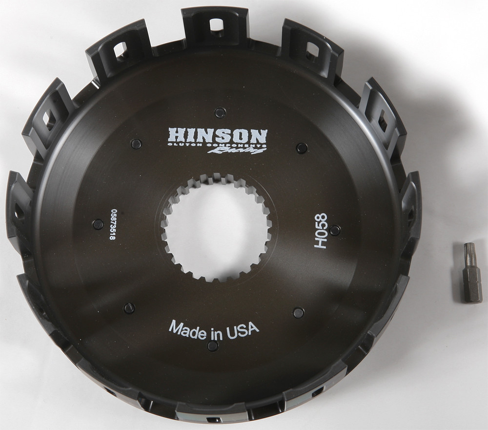 Product Brand: Hinson Manufacturer Part Number: H058 Billet Clutch Baskets Improves clutch performance, clutch life and heat dissipation. Used by all major factory teams and riders. Precision-machined from billet T-6 aircraft quality-aluminum to aerospace tolerances, and hard coated for 5x the wear resistance (with proper maintenance) to stock. Allows clutch assembly to spin more true creating less heat when clutch is disengaged.