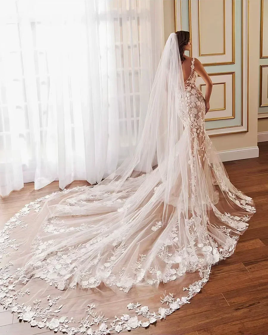 Sexy V-Neck Wedding Dress Spaghetti Straps Mermaid Backless Lace Appliques Gowns