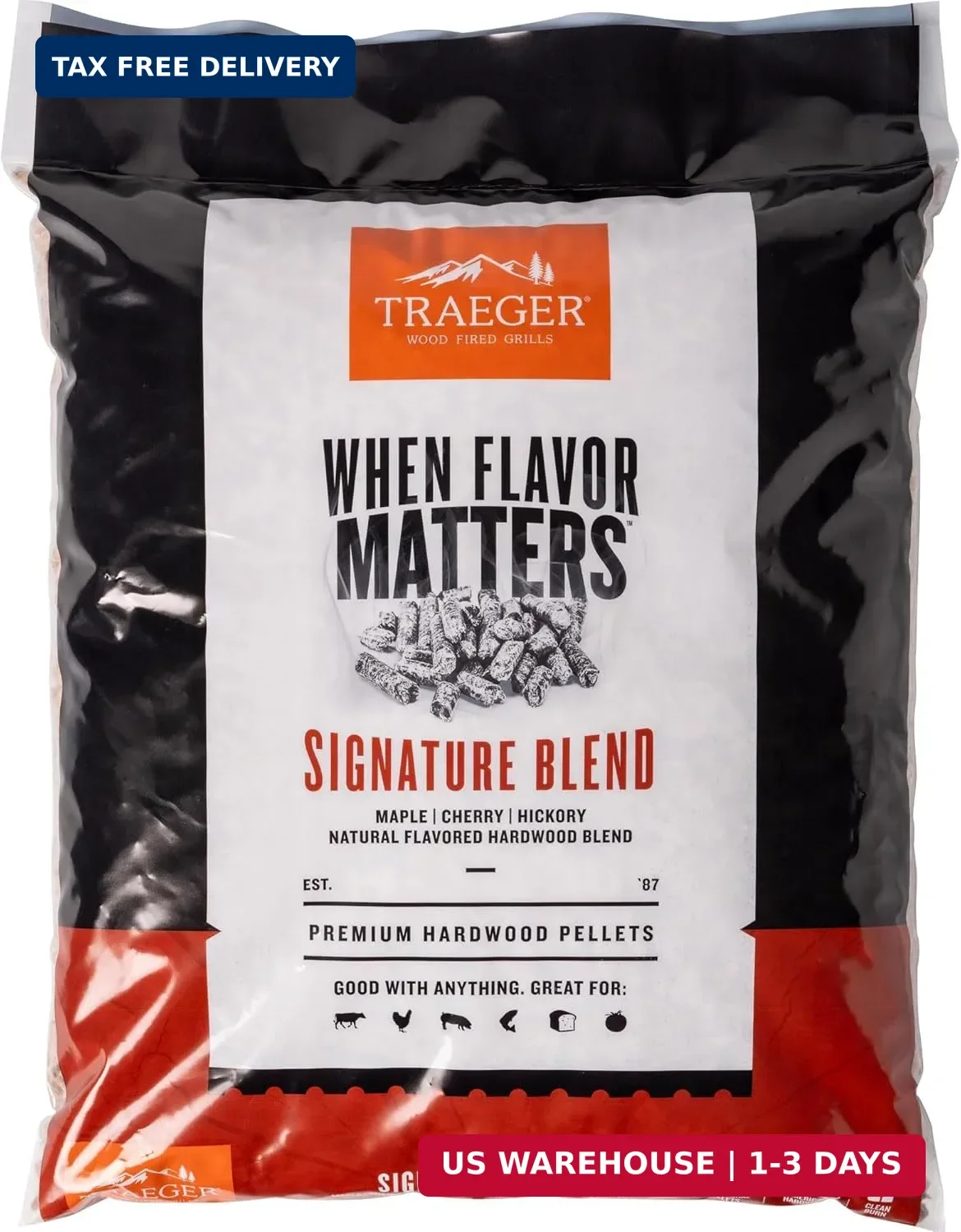 • SIGNATURE BLEND WOOD FIRED FLAVOR: The flavors of hickory, maple, and cherry hardwoods combine for in our Traeger Signature Blend Hardwood Pellets for flavor that can take on just about anything you cook; From classic BBQ meats, to fish and veggies, this versatile blend gives you full-bodied flavor you'll go back to time and time again