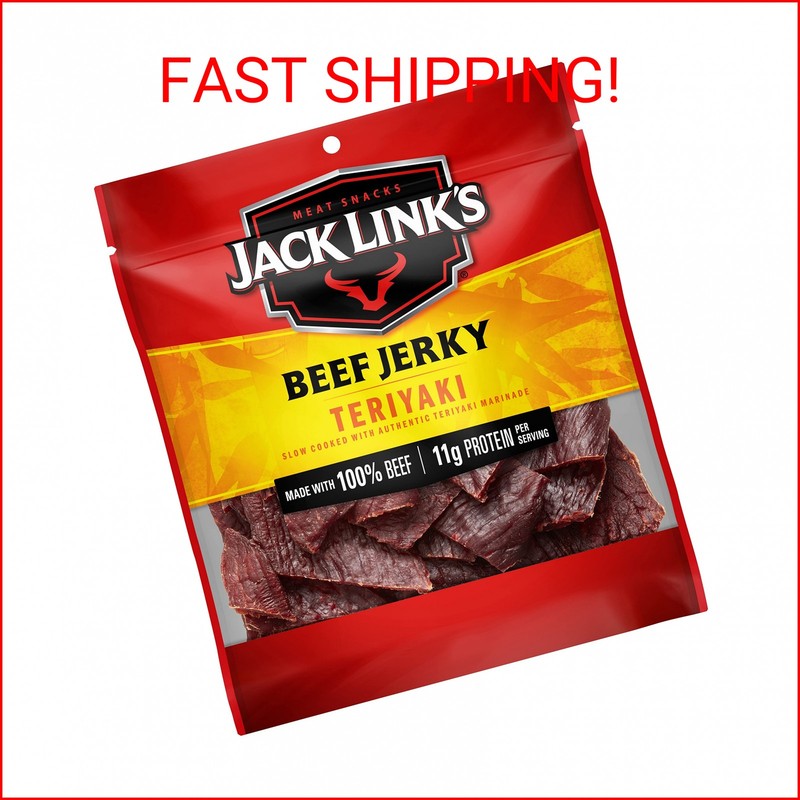 Jack Link's Beef Jerky, Teriyaki Jerky Bag – Flavorful Meat Snack, Ready to Eat Protein Snack with 11g of Protein and 80 Calories per Serving, Made with 100% Beef, Keto Friendly, 2.85 Oz.
