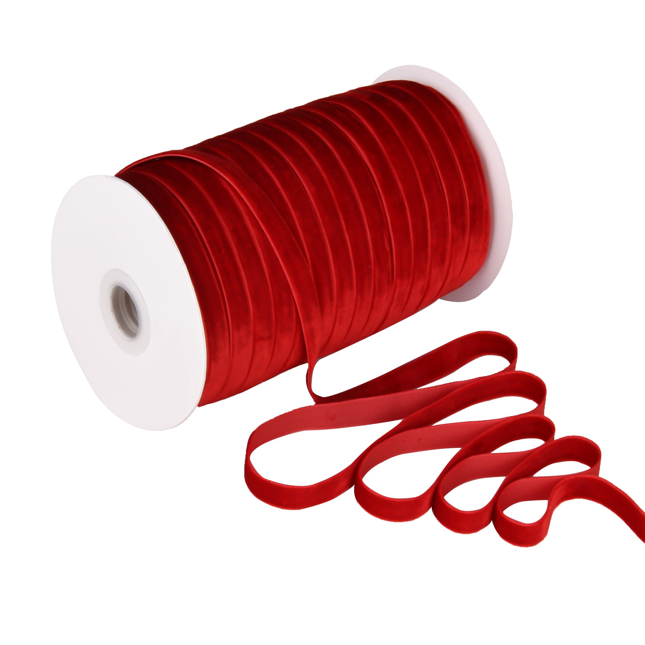 Velvet Ribbon Velvet Ribbon Roll with Spool for Gift Wrapping Decoration Party Wedding Arts Crafts (Red, 3/8"-100 Yard)
