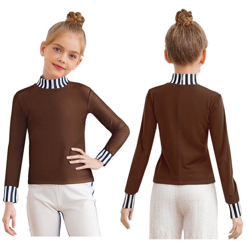 Girls Leotard Back Invisible Zipper Unitards Athletic Bodysuit Mock Neck DanceUSD 7.49