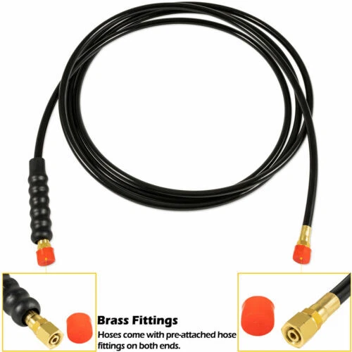 - Top-quality rubber hose with brass fittings; resists kinks, abrasion, and corrosion.