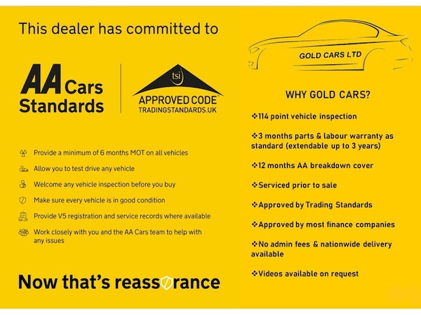 We want you to be totally confident when buying from Gold Cars Ltd. To ensure your complete satisfaction we promise that the photographs shown here are of the actual vehicle for sale and are NOT mis-representative library shots.