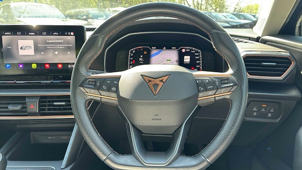 12V Socket, Daytime Running Lights with Automatic Headlight Control and Coming-Leaving Home Lights, Digital Cockpit and Configurable Dashboard, Driver Alert System, Driving Profile Selection, Dynamic Headlight Range Control, Forward Collision Warning with Automatic Braking, Front Fog Lights with Cornering Function, LED Headlight, LED Taillights with Dynamic Indicator, Navigation System, Power Steering, Predictive Adaptive Cruise Control with Speed Limiter, Rear Parking Sensors, Tyre Pressure Monitoring System, USB Type C x4 - x2 Front and x2 Rear, Wireless Phone Charger, 18in Alloy Wheels - Performance Machined Sport - Black and Silver, Breakdown Kit, Door Mirrors Electrically Adjustable - Folding and Heated, Electric Window - Front, Electronic Locking Differential with Dynamic Traction Support, Gloss Black Roof Rails and Window Surrounds, Locking Wheel Bolts, Rear Diffuser with Black Simulated Exhaust Pipes, Tinted Rear Windows, 60-40 Rear Seats with Central Armrest and Mechanical Seat Release, Auto Dimming Rear View Mirror, Black Sports Seats with Copper Stitching, Copper and Aluminium Interior Detailing, Front Centre Armrest, Front and Rear Head Restraints, Headlining - Grey, Illuminated Interior Front Door Sills, Illuminated Sunvisor with Mirror, Interior Ambient Lighting, Leather Multi-function Steering Wheel, Manually Adjustable Height and Lumbar Support for Front Seats, Rain Sensing Wipers, Reading Lights - 2x Front - 2x Rear, Three Zone Climate Control with Control Panel in the Rear, Variable Luggage Compartment Floor, Welcome Lights, ABS - Anti-lock Braking System, Airbag on Driver and Front Passenger Side with Front Passenger Airbag Deactivation, Anti-Theft Alarm, Cupra Connect - Safety - Service - Remote and Online, Electronic Parking Brake, Front Side Curtain Airbag, Isofix, Kessy - Keyless Entry and Start, Lane assist, Safety and Driving Pack M, Seat Belt Reminder