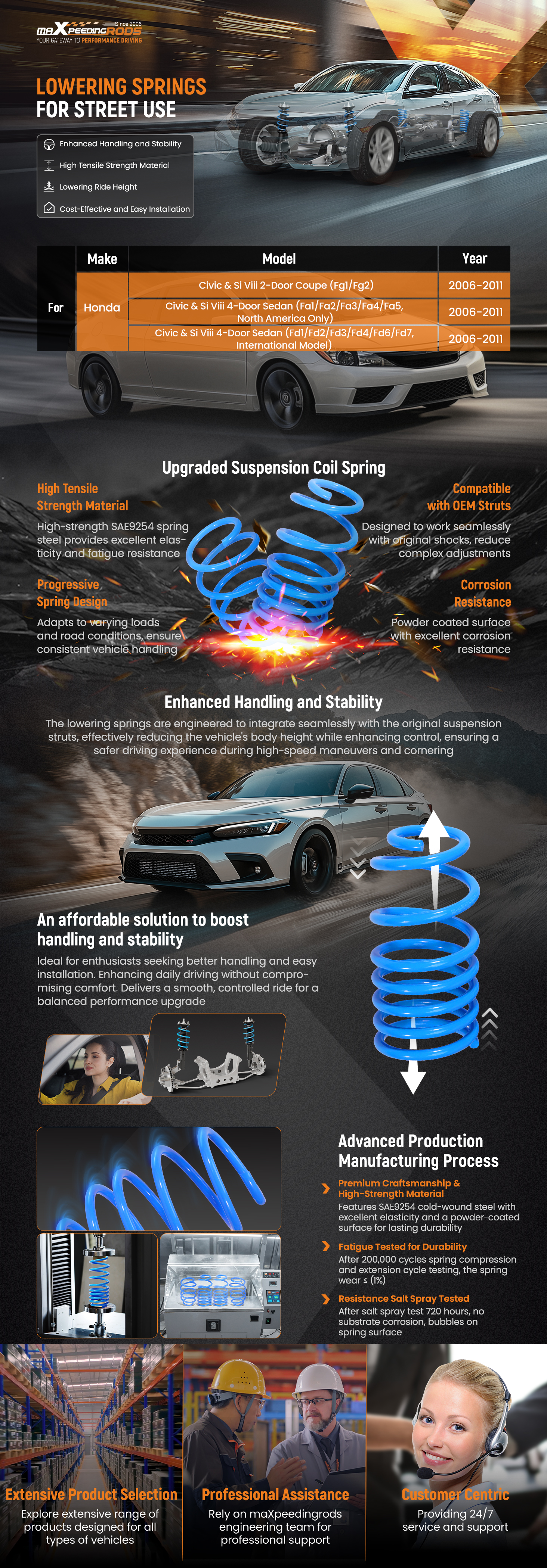 MaXpeedingrods Lowering Springs Drops 2" For 2006-2011 Honda Civic