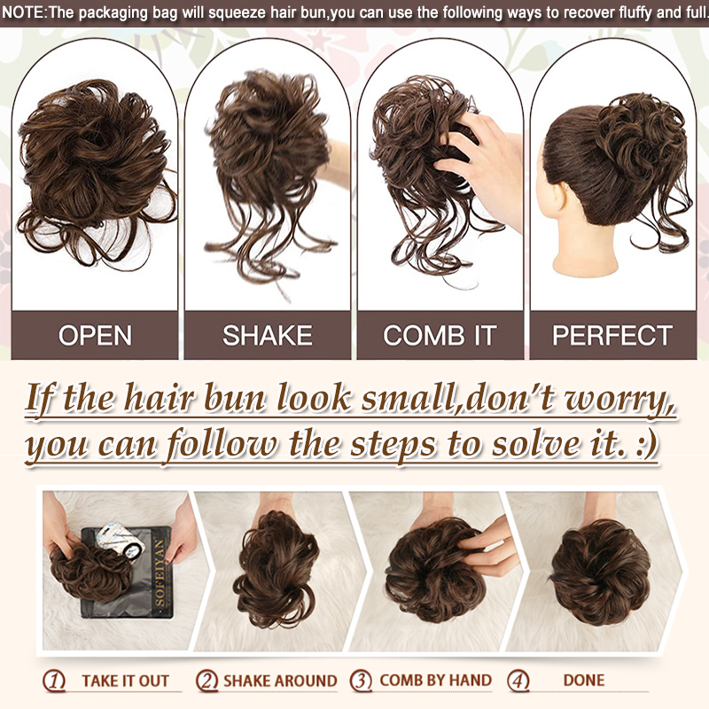 Warm Tip:Due to the color settings of different monitors, the colors you see may be slightly different. Please check your hair color that day and choose a color similar to our messy bun hair piece. If you have any questions, please contact us.
