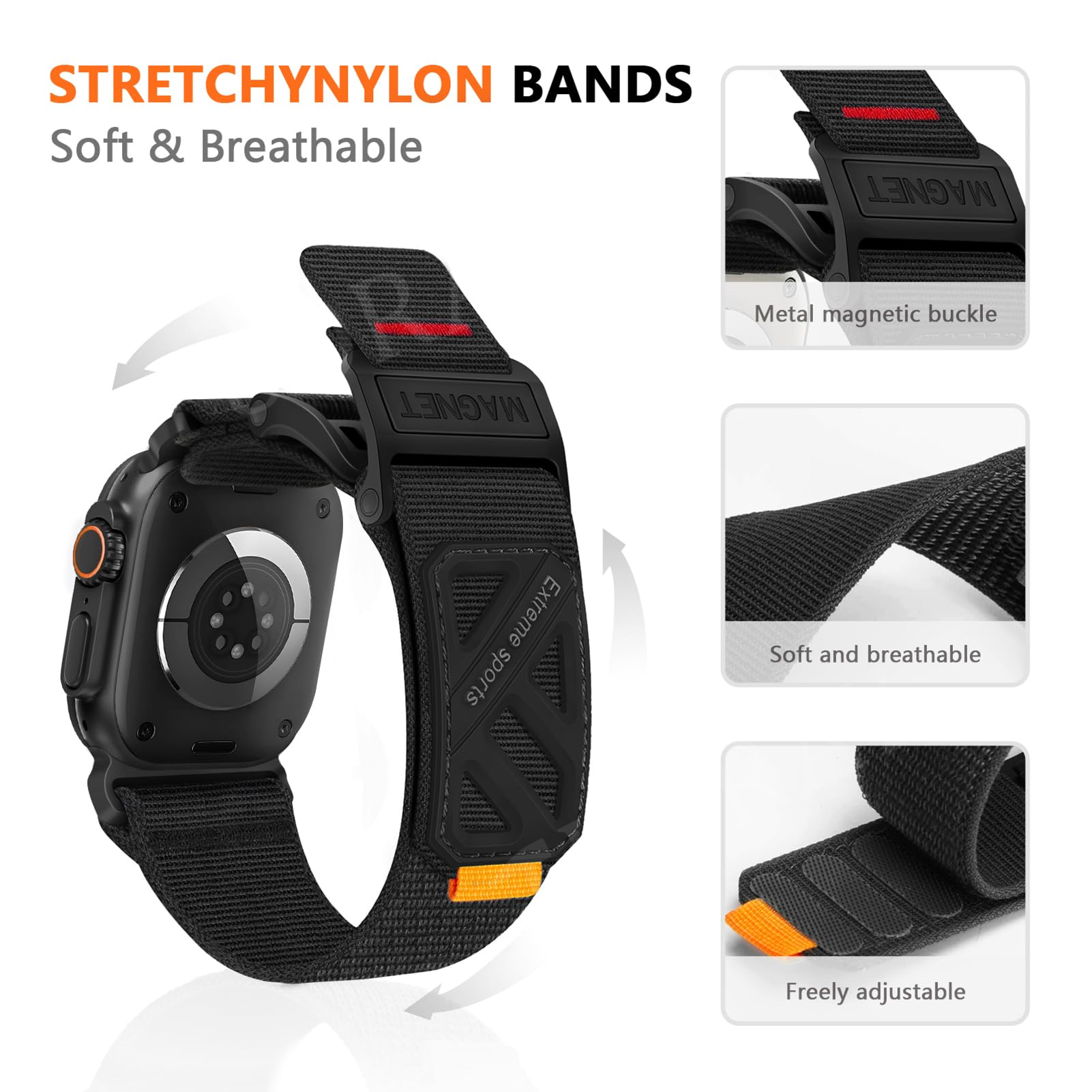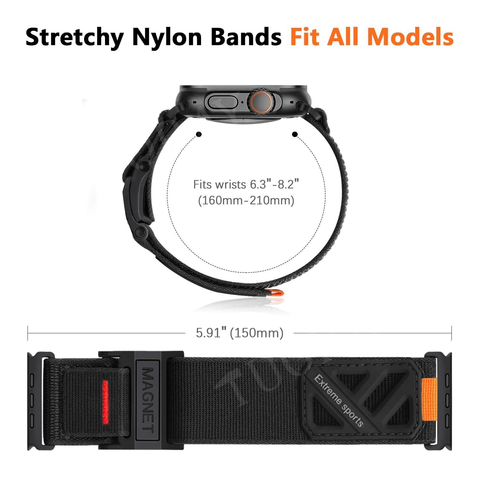 【Hochwertiges Nylonmaterial】: Nylon ist bekannt für seine Festigkeit und Langlebigkeit und eignet sich daher hervorragend für Uhrenarmbänder, die intensiven Trainingseinheiten oder Outdoor-Aktivitäten standhalten müssen. Außerdem ist es leicht und verursacht in der Regel keine Hautreizungen.