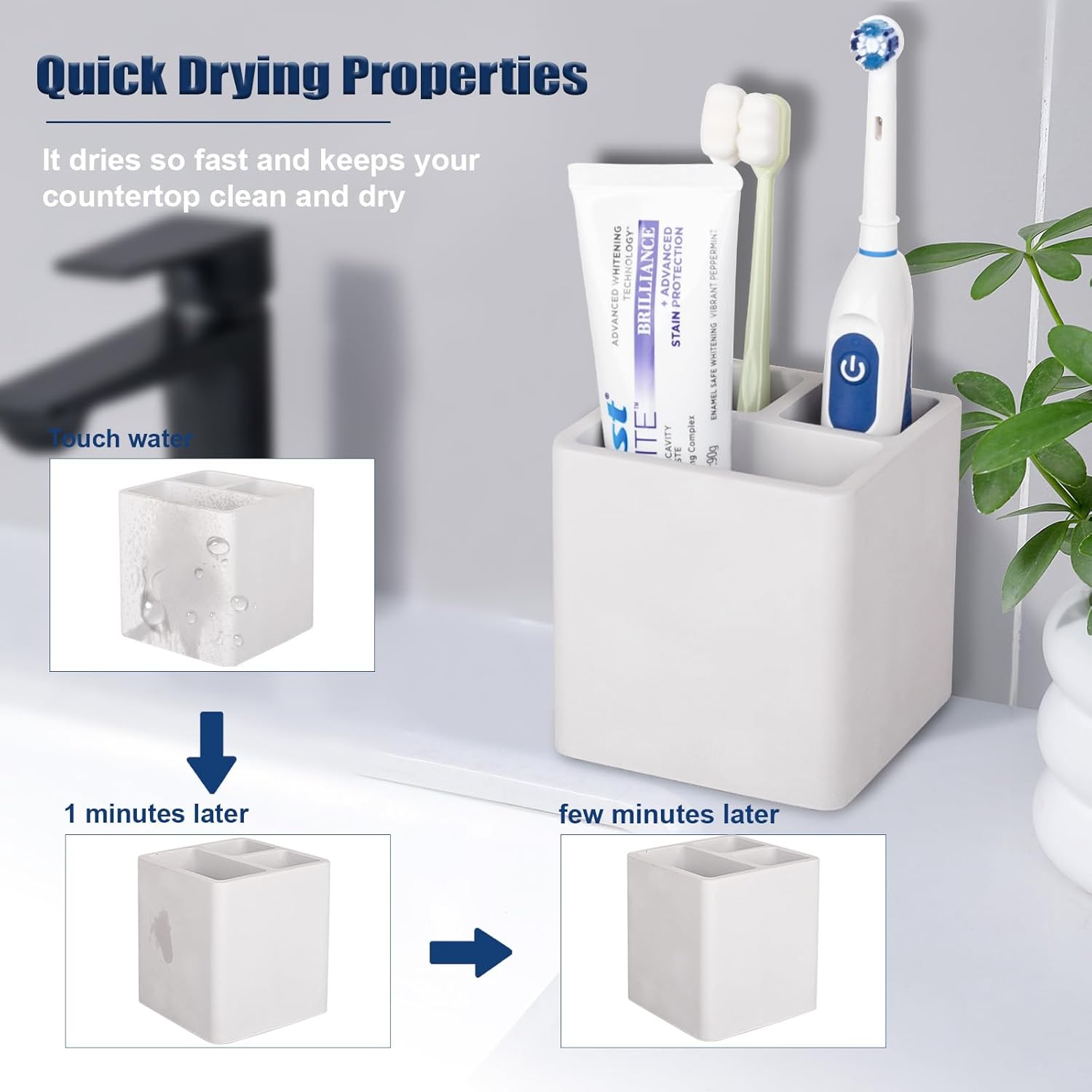 Soaks Up Water Quily: This tooth brushing holder is made of natural diatoeous earth,which is super-absorbent. When the toothbrush drips,it also effectively absorbs the water left inside so you don't have to constantly clean it or wipe it down.