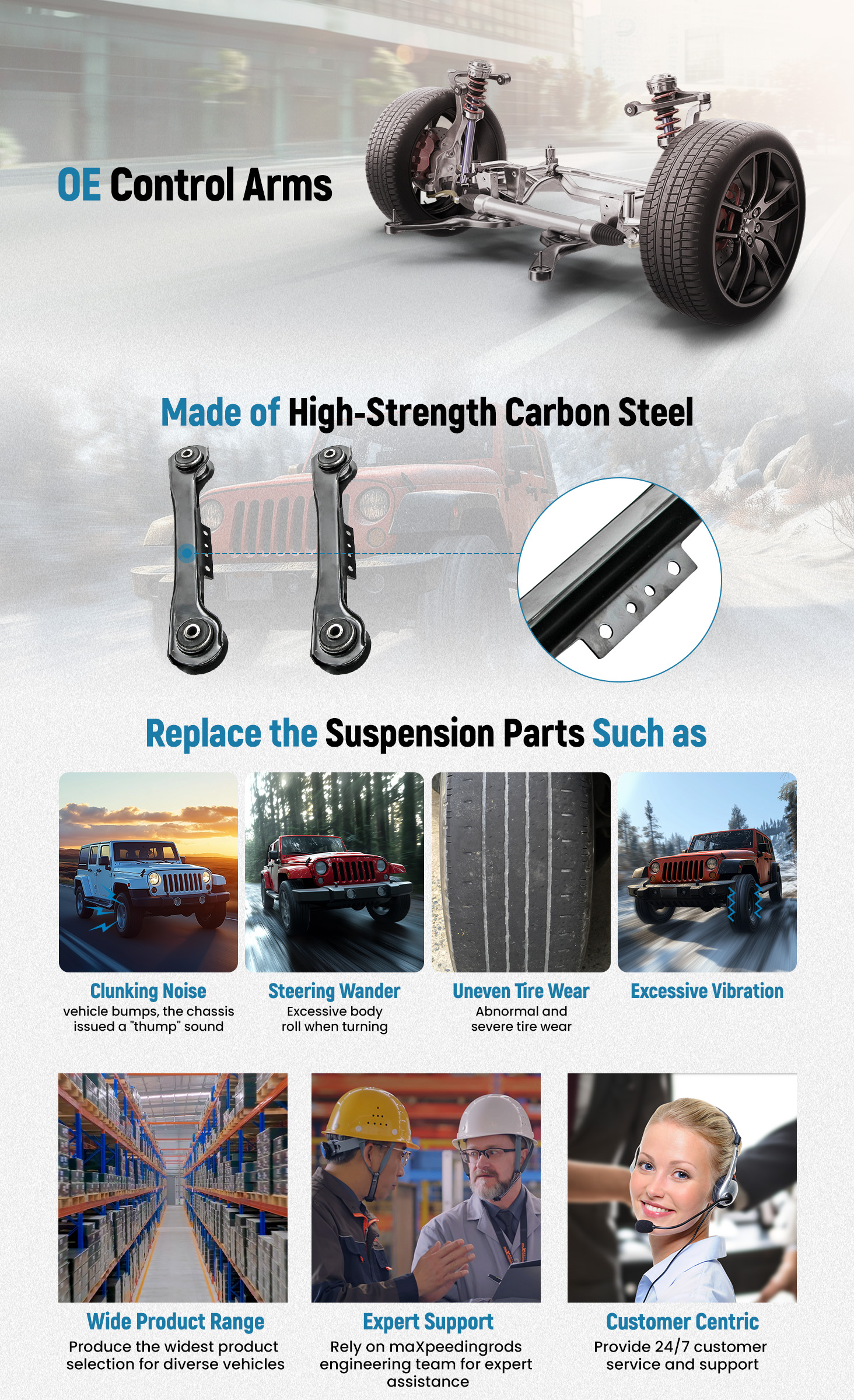 - The control arms are manufactured using advanced processes and premium coatings to maximize their durability and corrosion resistance