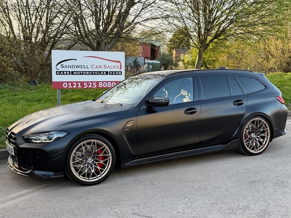 2023 BMW M3 XDRIVE COMPETITION TOURING, EURO 6, ULEZ COMPLIANT, 14,000 MILES, 1 OWNER FROM NEW, FULL BMW SERVICE HISTORY, HPI CLEAR, 2 KEYS, ULTIMATE PACK, INDIVIDUAL FROZEN BLACK, GENUINE M PERFORMANCE CARBON KIT, GENUINE 1000M M PERFORMANCE ALLOY WHEELS IN GOLD, FULL PPF INCLUDING CARBON KIT, CARBON BUCKET SEATS, GHOST IMMOBILISER. ^^***** CARS, VANS AND MOTORCYCLES TAKEN IN PART EXCHANGE *****^^^ ALL VEHICLES ARE HPI CHECKED AND HPI CLEAR, PART EXCHANGE AVAILABLE, FINANCE AVAILABLE, VEHICLES ARE SUPPLIED WITH A FULLY COMPREHENSIVE PARTS AND LABOUR WARRANTY, ALL VEHICLES UNDERGO A PROFESSIONAL VALET, VEHICLES CAN BE DRIVEN AWAY ON THE SAME DAY, DRIVEAWAY INSURANCE CAN BE ARRANGED, DELIVERY SERVICE AVAILABLE, FREE COLLECTION FROM LOCAL AIRPORTS OR TRAIN STATIONS, LOCATED IN BIRMINGHAM, POST CODE B70 9ET, LOCAL MOTORWAYS ARE M5 & M6, OPEN 7 DAYS A WEEK, 10am - 7pm, VIEWINGS PRIOR TO APPOINTMENT ONLY, INDOOR SHOWROOM.