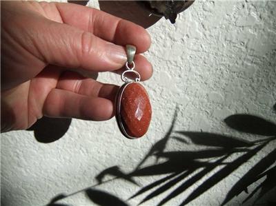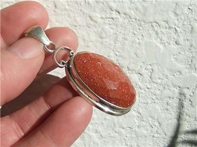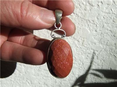 This is an amazing, FACETED GOLDSTONE showing bright flash and color across the whole surface of the large oval stone. Set in .925 Sterling Silver and stamped on the bail.