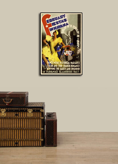 This great Vintage Style Travel Poster shows a woman dancing at Carnaval in Havana. The
