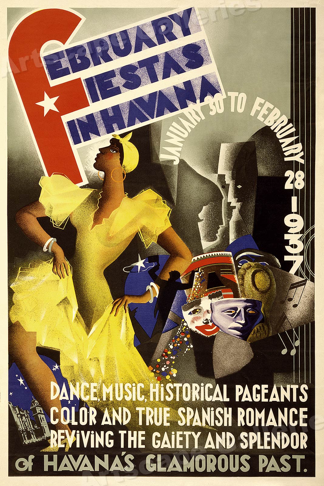 caption reads: "February Fiestas in Havana - Dance, music,
