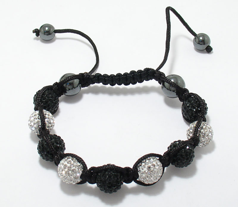 Adjustable 10mm Black and Clear Crystal Disco Ball Macrame Hip Hop Bracelet