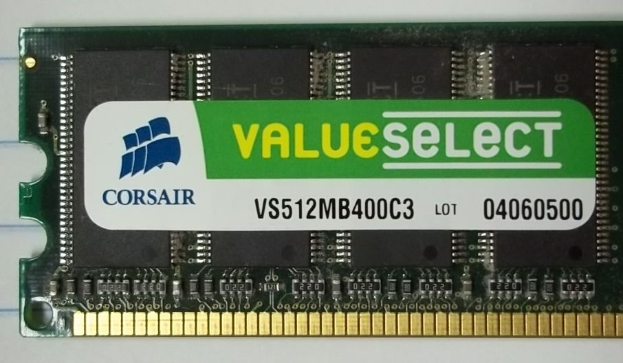 Corsair VS512MB400C3 512MB DDR PC3200 CL=3 non-ECC DDR400 2.6V 64Meg x 64 |