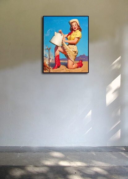 This is a Classic Vintage Style Pin-Up Poster originally published in the 1950s. This Poster, by Gil Elvgren - one of the most famous and respected pin up artists of the twentieth century, is from the canvas oil painting of the same name.