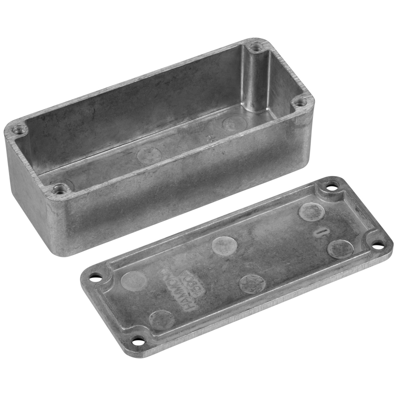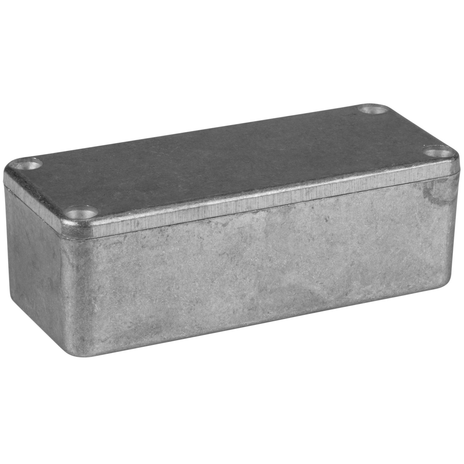 These rugged electronic instrument cases are made with diecast aluminum alloy for superb durability. Provides improved EMI/RFI shielding. Screws (included) secure countersunk lid in pre-tapped holes. Finish is unpainted aluminum alloy. Silver in color. Made in Canada. Hammond #1590A.