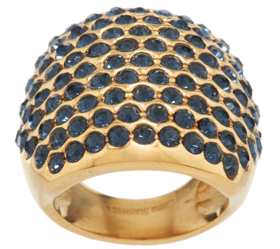Click image to Enlarge | QVC Bold Blue Crystal Cocktail Ring Stainless Steel Yellow Gold Tone J292748 |