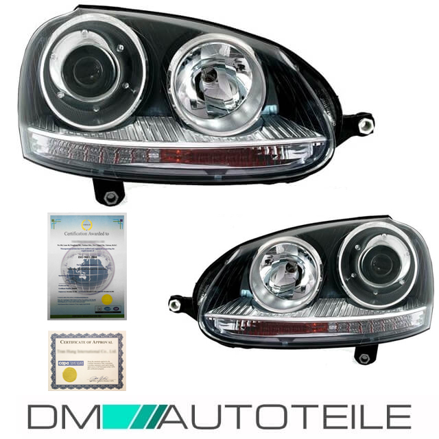 • passt für VW Golf 5 passt für VW Jetta Scheinwerfer Set Schwarz mit schwarzen Lamellen +Motoren+  Osram Leuchtmittelpaket im Wert von 59,90€ ! Einbaufertig