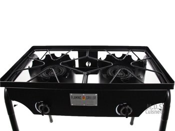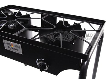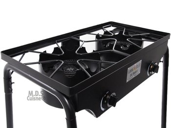Control burning up to 55,000 BTU. This Double burner will need manual lighting. Easy to Set UP and Transport