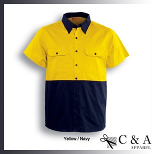 High-Vis Short Sleeve Cotton Twill Shirt with Utility Pockets, and Additional Pen Pocket with Mesh Inserts at Under Arm Section and Back Yoke.(Compliance Certification Number: AS/NZS 4602:2011 Day Use Only) 150GSM 100% Cotton Twill Anti Pill Fabric with Sun Protection
