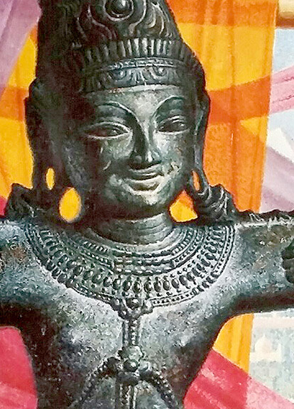 This great Vintage Style Travel Poster shows an stone statue of a dancer in front of a curtained window.